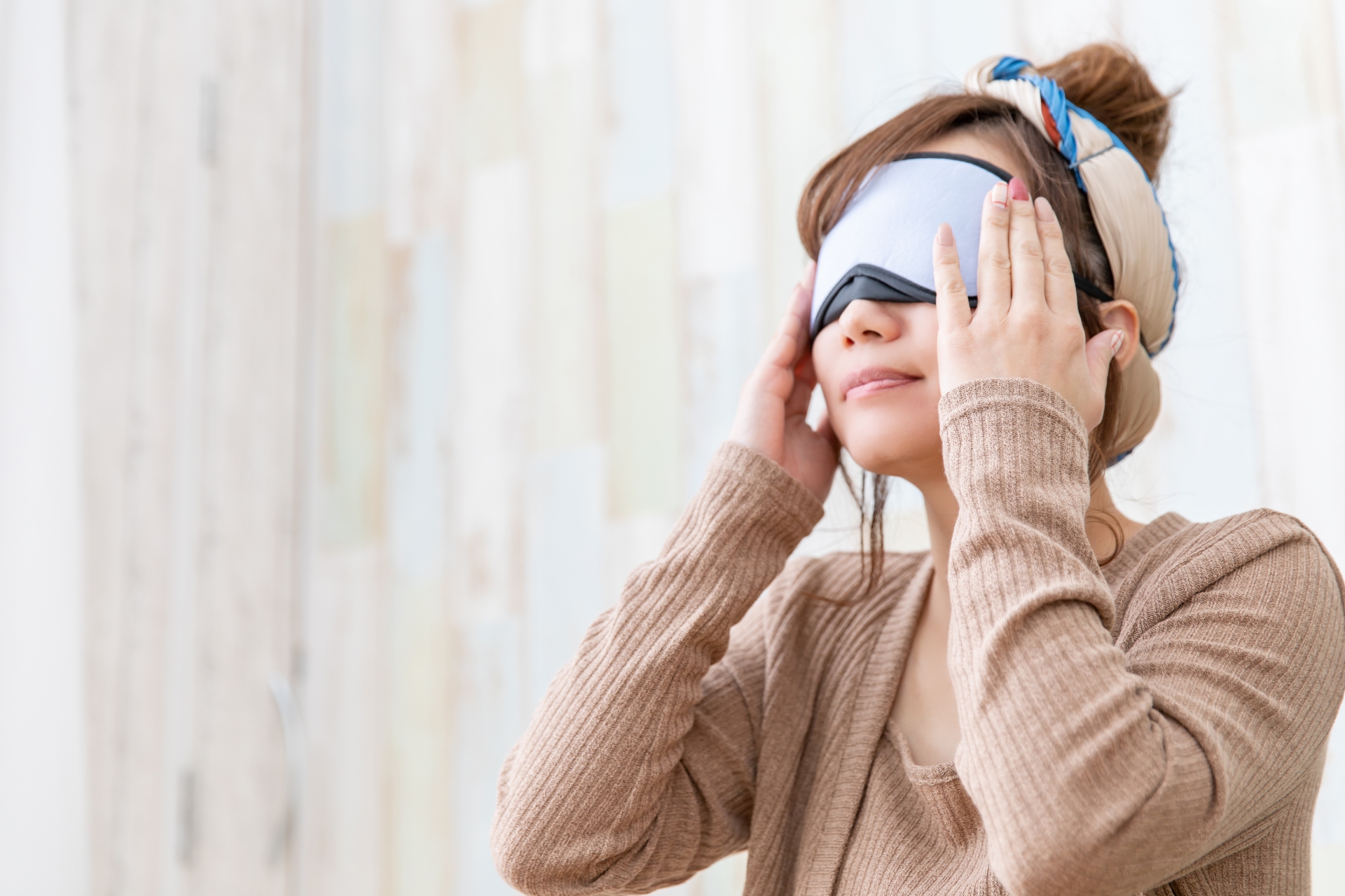 - 光:明るさは体内時計に直結。わずかな常夜灯や朝日の漏れでも覚醒方向に働きます。鼻筋まで遮光できると、まぶた経由の刺激が激減。