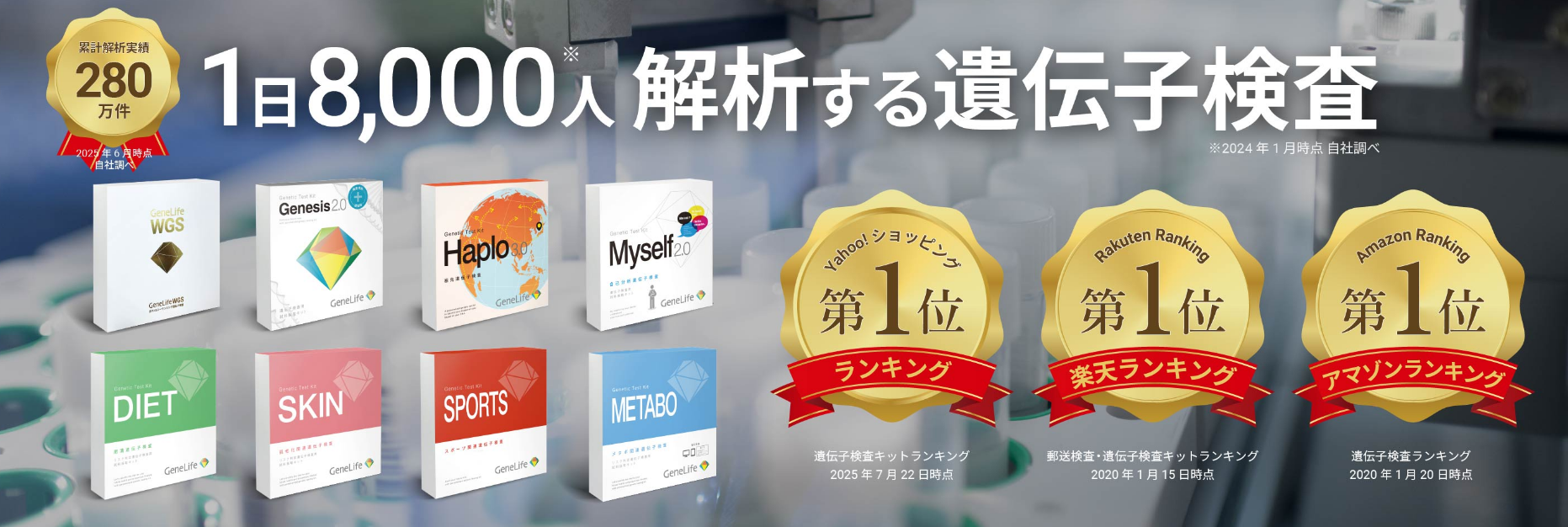 ジーンライフは、総合力の高い項目カバレッジ、わかりやすい運用、そして非医療・プライバシー配慮の明確な方針で、“知る→行動する”までを後押しする遺伝子検査ブランドです。まずは関心の高いテーマから、あるいは広く俯瞰できる総合キットを選び、結果を日々の選択(食事・運動・睡眠・検診)に結びつけて活用しましょう。結果はゴールではなくスタート。生活をアップデートするための道具として長く役立ててください。