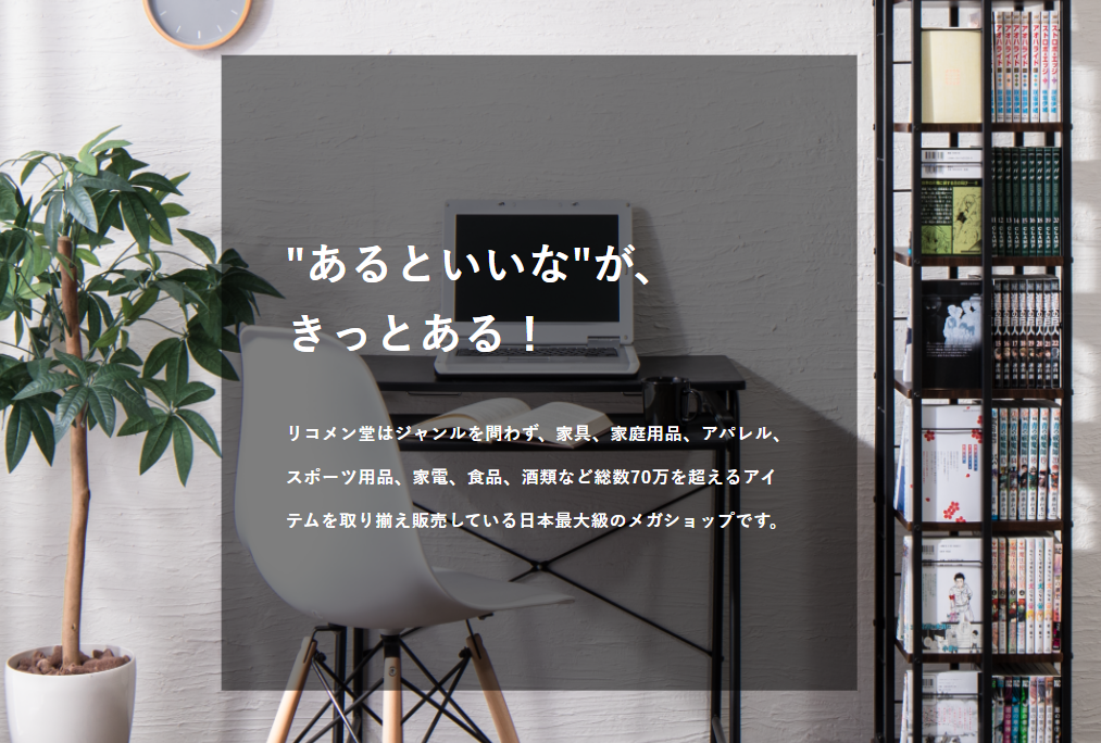 リコメン堂は、EC事業を展開する株式会社ジェネレーションパスが運営する総合オンラインショップ群の名称です。自社ストアや各モールに出店し、暮らしに必要なカテゴリーを横断して展開しています。キャッチコピーは「“あるといいな”が、きっとある!」。