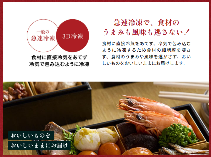 A. 指定の手順で解凍すれば、見た目や食感の崩れを抑えられるよう工夫されています。到着日を選びやすく、年末の段取りがしやすいのも利点。