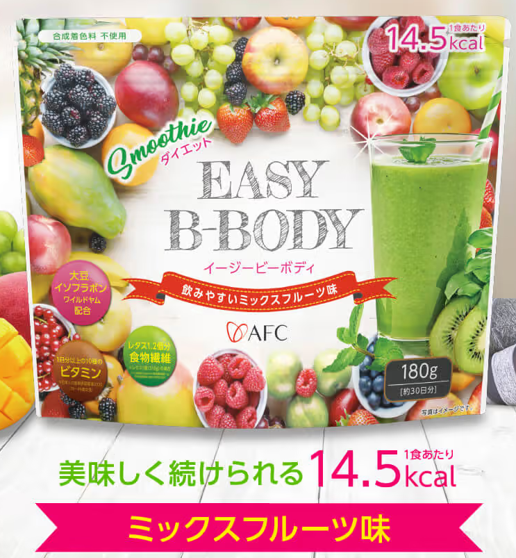 EASY B-BODY定期便は、置き換えや栄養補助に使えるスムージー粉末を、割引価格と柔軟な配送サイクルで続けやすくしたサービスです。レタス約1.2個分相当の食物繊維や多品目の野菜・果物ミックスを配合し、朝食代わりや間食の置き換えに使いやすい味設計。着色料などに配慮したシンプル処方で、ジュース感覚の飲みやすさを重視しています。