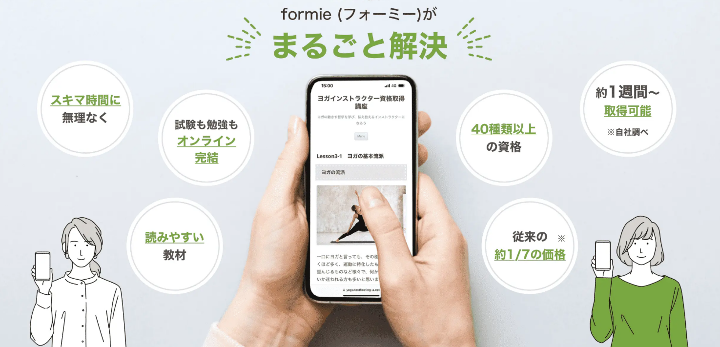 formie(フォーミー)は、スマホやPCだけで学習から受験まで完結できるオンライン資格講座サービスです。美容・食・心理・育児・片づけなど生活に直結するテーマが多く、在宅でスキルを身につけたい人に向いています。本記事では購入検討中の方向けに、特徴・メリット・おすすめポイントを整理し、実際のレビューも紹介します。