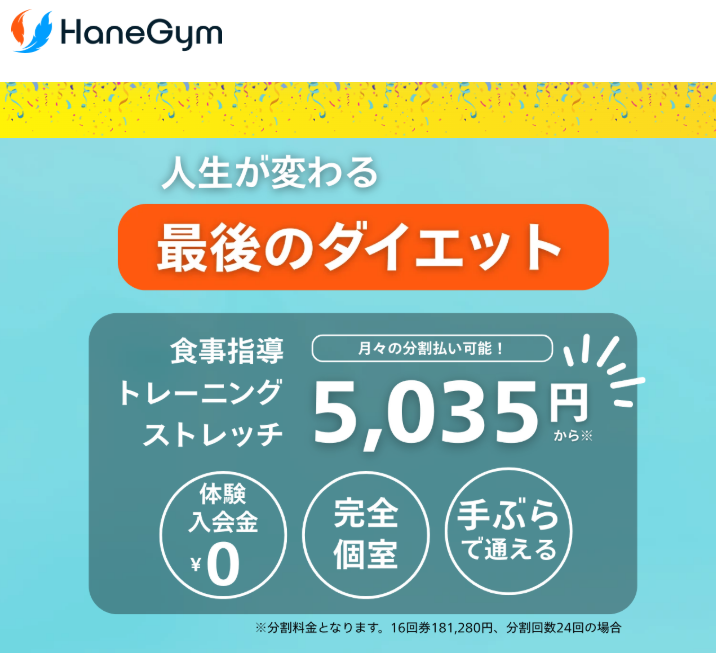 本記事は、コーチング型ダイエットプログラム「HaneGym」を検討中の方向けに、特徴・メリット・進め方・注意点を整理した紹介レビューです。実際の内容や料金、特典は時期により変わるため、申し込み前に最新情報をご確認ください。