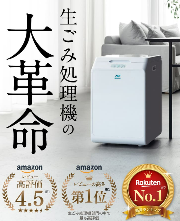 NAXLU(ナクスル)|キッチンの生ごみ問題を“ニオイ・手間・音・電気”の4方向から解決する家庭用生ごみ処理機