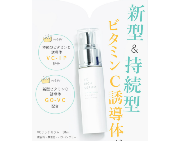 VCリッチセラムの大きな特長は、新型ビタミンC誘導体を採用している点です。