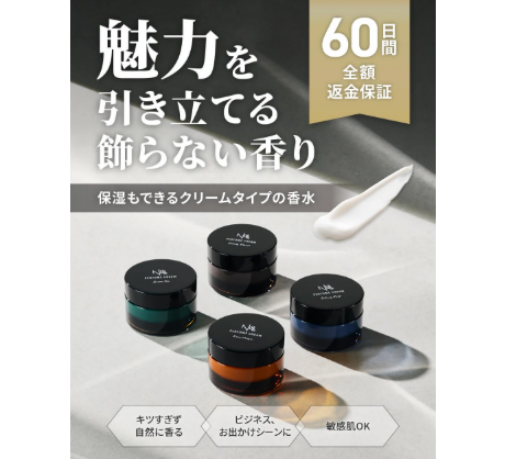 NULLパヒュームクリームは、男性向けに設計された香水クリームです。一般的なスプレータイプとは異なり、肌になじませることでほんのりと香りが続き、周囲に不快感を与えにくい設計になっています。