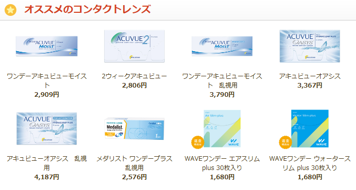 ワンデータイプから2ウィークタイプ、さまざまなブランドや度数に対応しており、自分に合ったコンタクトレンズを選ぶことができます。