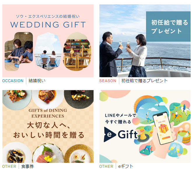 ソウ・エクスペリエンスは受け取った人が選べるため、満足度が高くなりやすいのが特徴です。