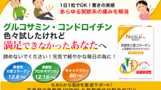美容・健康 【おすすめレビュー】ニコラプロ(NICOLA Pro)|非変性Ⅱ型コラーゲン×プロテオグリカンで関節ケアを習慣化 階段の上り下りや立ち座り、長時間の歩行で「あれ、前より負担が…」と感じたら、まずは“続けやすい関節ケア”を。ニコラプロは、非変性Ⅱ型コラーゲンと非変性プロテオグリカン、さらにハーブのキャッツクローを組み合わせ、毎日の動きをスムーズにすること... 2025.09.27 美容・健康